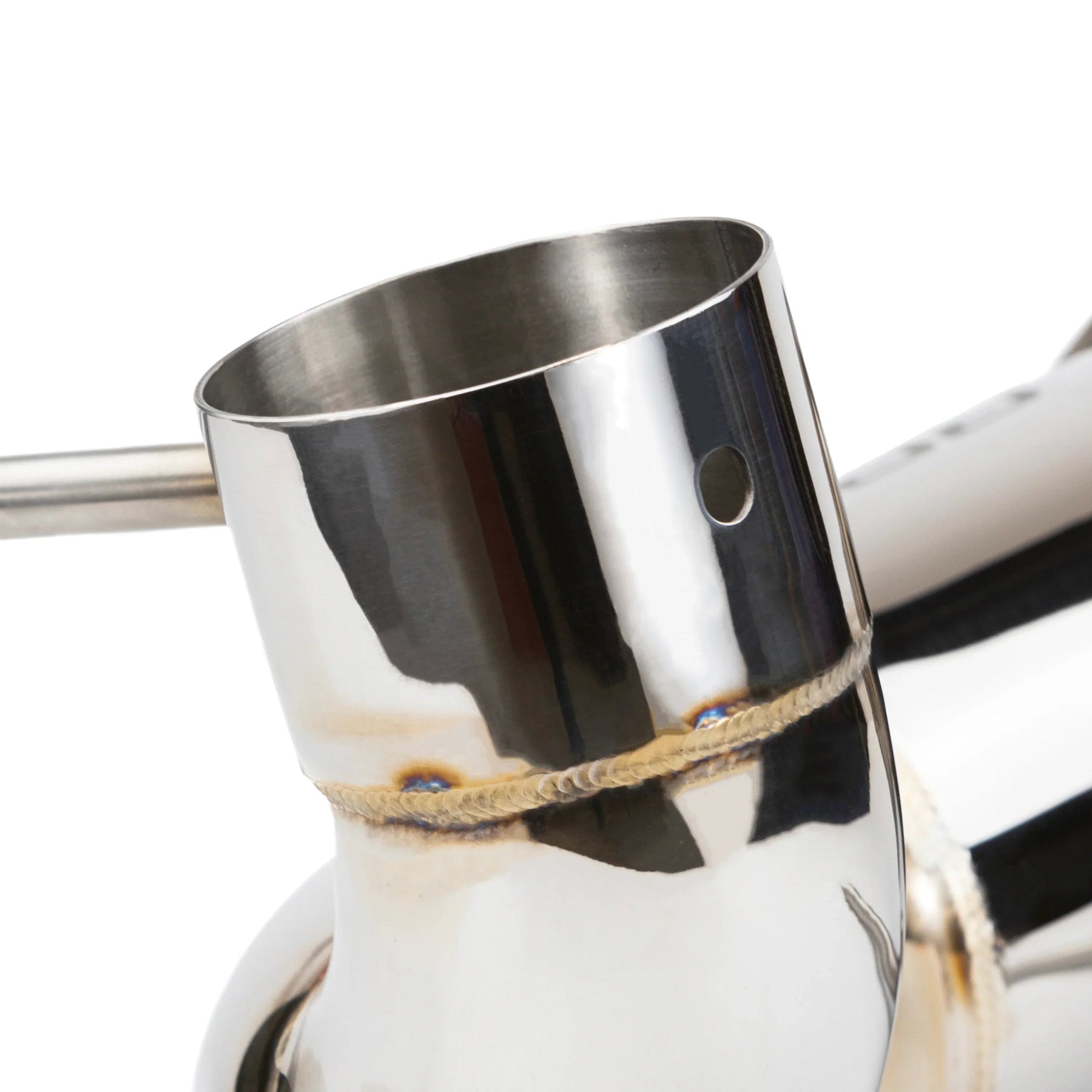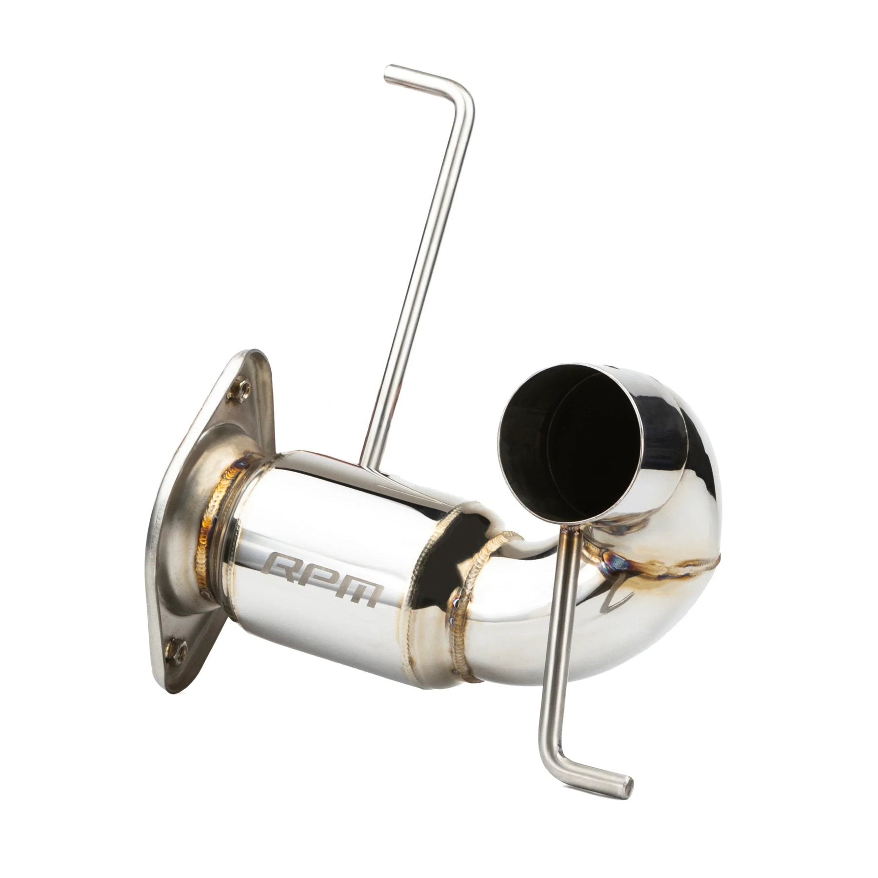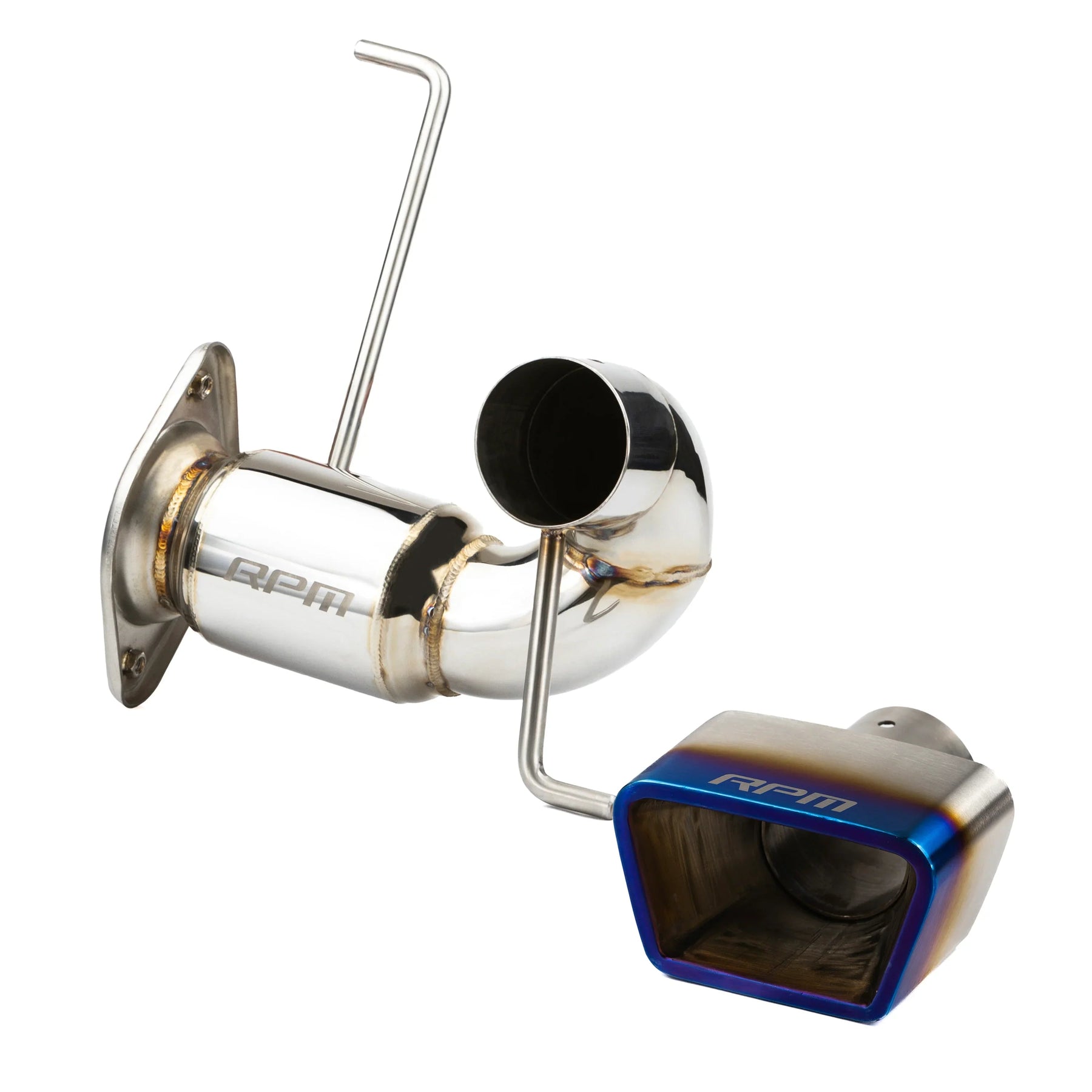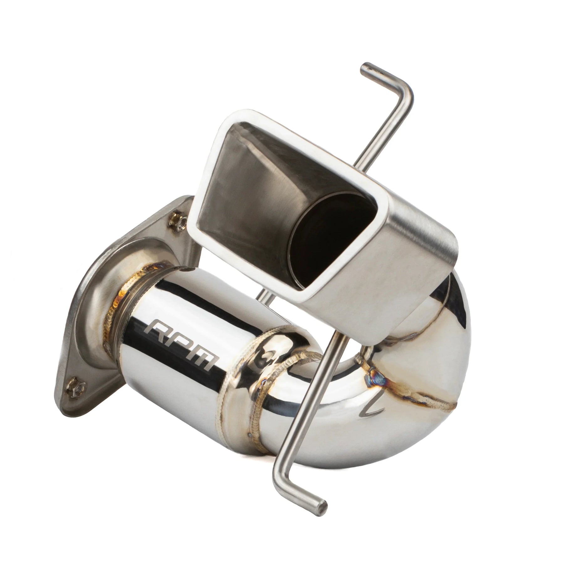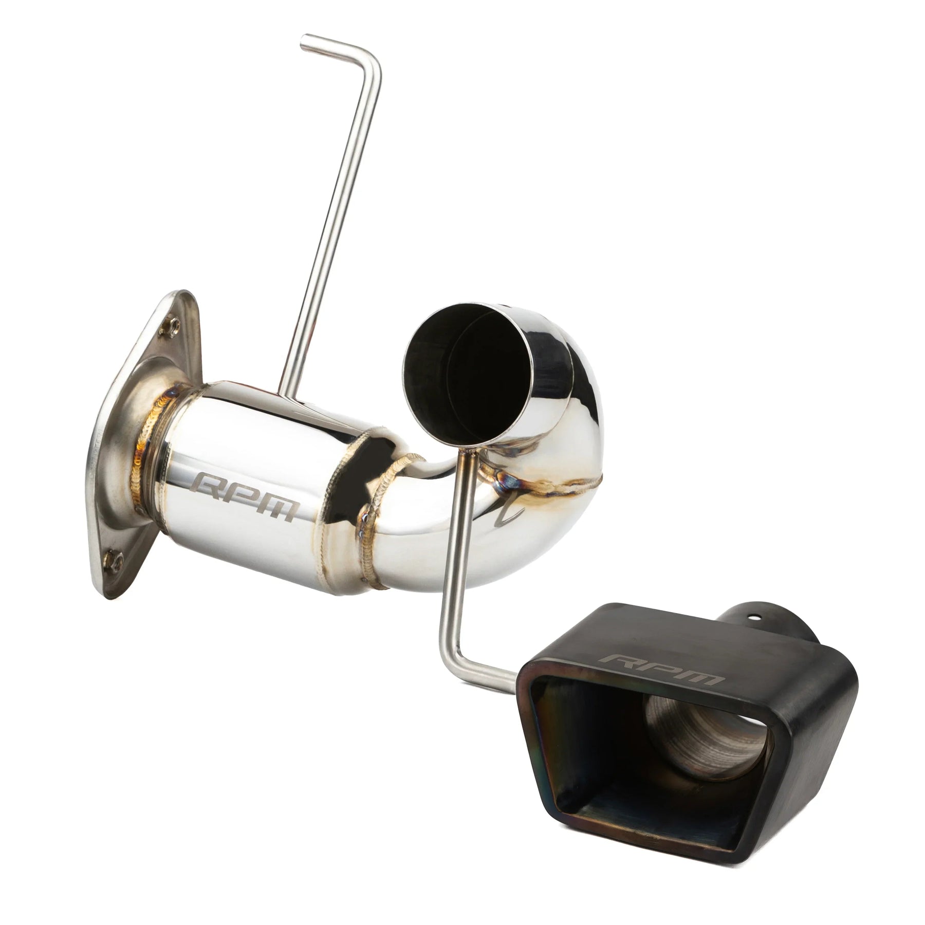 This muffler was designed for those who like LOUD. This uses a 4" bullet muffler with RPM's signature internal "Baffle Blade". This is a internal, unrestrictive baffle that creates the needed back pressure the inline 2.0 liter Pro R needs for optimal performance. This entire muffler weighs in at only 4.5LB's and is designed and built with the racers in mind. The OEM gasket is used & bolts into the factory location. This RPM Race Pipe is built from polished 304 stainless and is a full 3" pipe. This Muffler uses and includes the signature RPM, factory appearing 3" tip!