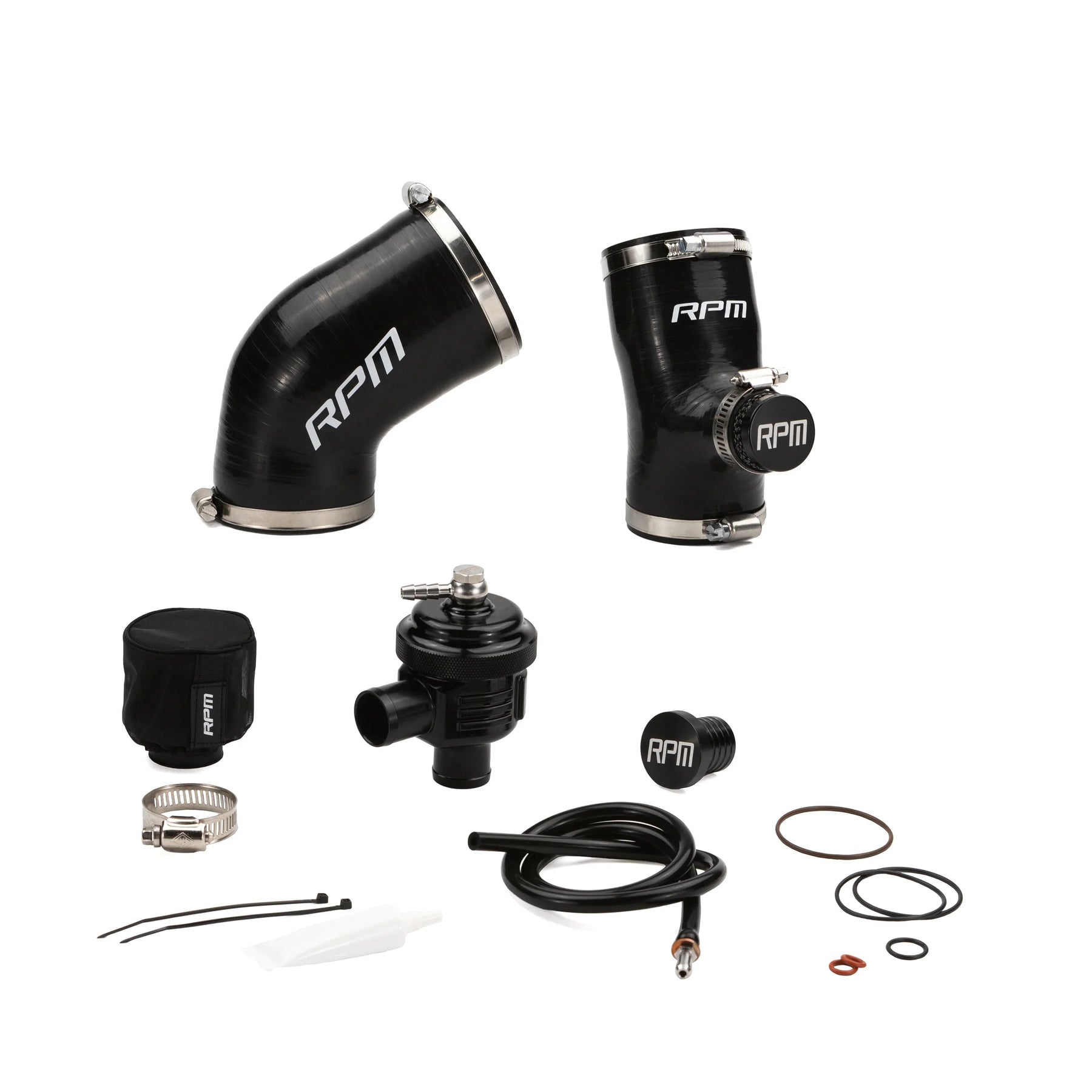 RPM as promised has developed the strongest and most durable silicone upgrade kit for the Patriot Boost line up. The soft rubber OEM tube is problematic even for bone stock sleds. It is simply to thin and is collapsing on itself. RPM's 5 ply HD tubes prevent this from happening while retaining the factory inner seal for the air box. The intake tubes interior dimensions have been port matched to that of the turbo's to create a smooth free flowing path of air for the absolute most velocity. The charge tube is also a 5 PLY HD silicone with the incorporation for a 25mm port allowing for use of the famous RPM BOV. BOV kits are sold separately and are not required. BOV installation requires taping into a vacuum port post reed valves. The factory engine cases do have a casting spot for this. Drilling and tapping is required. All Silicone Hoses use stainless Silicone Safe Worm Gear clamps. A BOV block off cap is included with every charge tube if a BOV kit will not be used.
